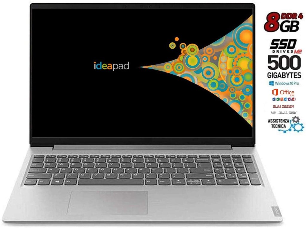 - Notebook Lenovo Silver, AMD 4, Display da 15.6″ LED, 8GB DDR4 SSD NVME Pci 256GB + SSD 256GB, Bt, wifi, WebCam, Graphic Radeon R3, Gar Italia, HDMi, USB 3, Office 2019, Win10 Pro, pronto all’uso